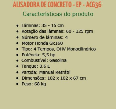 A Alisadora e acabadora de piso, são utilizadas para aumentando a produtividade e qualidade no acabamento de pisos, superfícies concretadas. A Alisadora, acabadora de piso EMIT EP-ACG36 é a escolha perfeita para a sua construção.