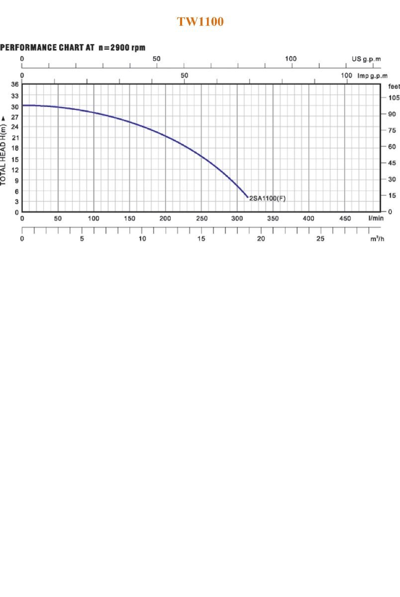 As bombas TW1100 foram projetadas para uma imersão parcial ou total para ser mais dinâmica. O princípio de funcionamento acontece em duas etapas: dois impulsores são instalados no mesmo eixo e giram dentro do difusor da ventoinha, canalizando o líquido de um impulsor para outro. Entre os impulsores e a ventoinha forma-se a energia cinética que é transformada em energia de pressão e deixa o líquido da bomba através da abertura lateral no corpo da bomba.